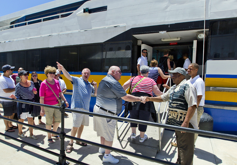 The high end ferry received a warm reception from visitors during its four round-trips for the day. And Jr. Minister Bascome was on hand to greet many of them.