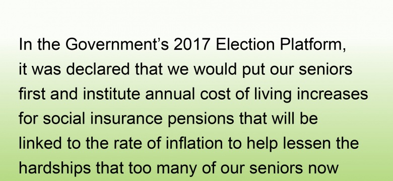 “Benefits under the Contributory Pension Fund (CPF) were last increased in 2016 by 3% and in 2017 by 1.7%,” said Minister Dickinson. “In the Government’s 2017 Election Platform, it was declared that we would put our seniors first and institute annual cost of living increases for social insurance pensions that will be linked to the rate of inflation to help lessen the hardships that too many of our seniors now endure. Accordingly, the Ministry will increase CPF benefits by 1.4% in January 2019, backed dated to August 2018 when benefits are typically increased.