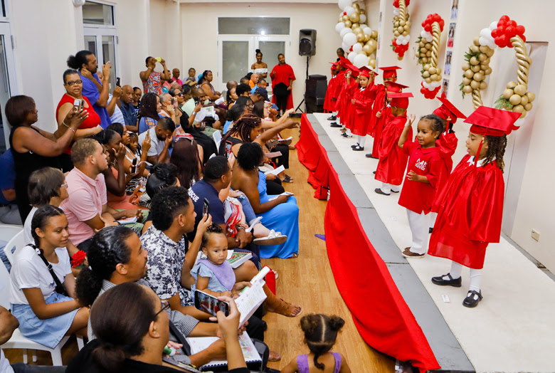 On Friday, the Minister of Legal Affairs, the Kathy Lynn Simmons, JP attended the graduation ceremony for the young students at Happy Valley Child Care Centre (HVCCC). Eleven children finished the nursery school programme and are now ready to start pre-school in September.