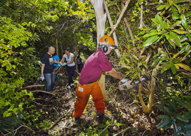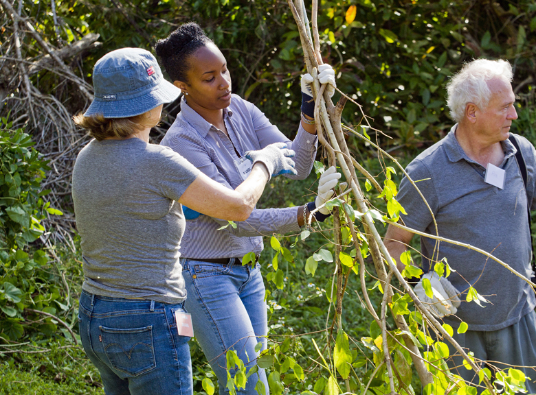 The Minister of Social Development and Sports the Hon. Nandi Outerbridge JP MP was on-hand to assist volunteers with removing some of the overgrown foliage from the site.