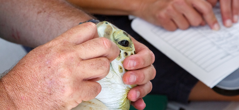 Before release, the turtles were weighed and had flipper tags attached. A very small DNA sample was taken from each individual turtle before groups of turtles were taken by boat to the area where they were first collected in the Great Sound. This is so that these individual turtles can be readily identified if they are returned to BAMZ.
