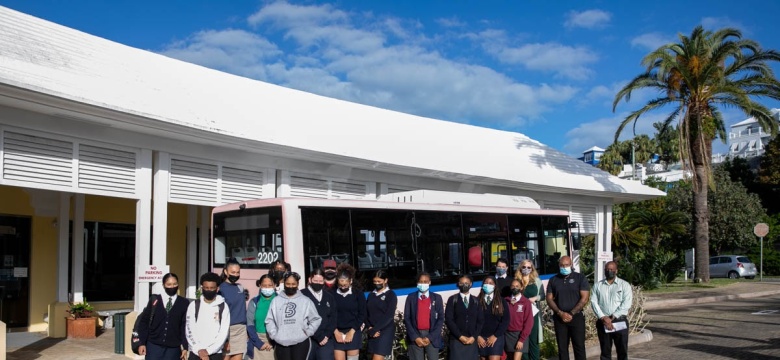 Students participating in the Bermuda Underwater Exploration Institute’s (BUEI) Youth Climate Summit Programme were given a presentation and tour of the Department of Public Transportation's (DPT) new electric buses.
