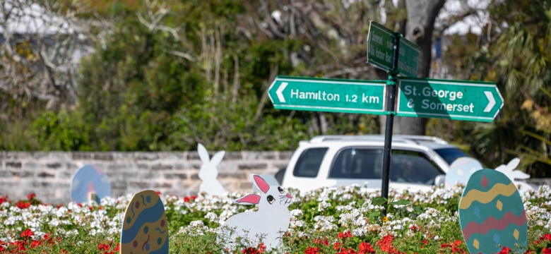 The Ministry of Public Works is pleased to advise the public that the Crow Lane and Trimingham Hill Roundabout Easter displays are in place for the public's enjoyment.