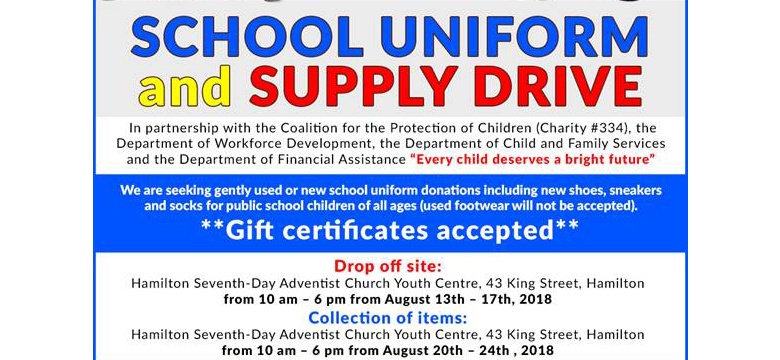 - Press ReleaseThree Government departments have teamed up with the Coalition for the Protection of Children (Charity #334), to launch a ‘Back to School’ school uniform and supply drive next month.