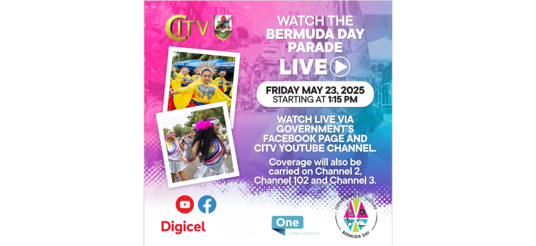 As a reminder, the Bermuda Day Parade will be carried live starting at 1:15 p.m. Friday, May 23, via Government’s FaceBook and YouTube Pages.