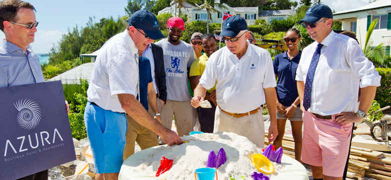 Today Premier the Hon. Michael Dunkley JP MP and the Minister of Tourism, Transport and Municipalities Sen. the Hon. Michael Fahy JP attended the groundbreaking ceremony for AZURA Bermuda - a Boutique Hotel and Residences which has just commenced construction on the property formerly known as Surf Side Beach Club, on the south shore in Warwick.