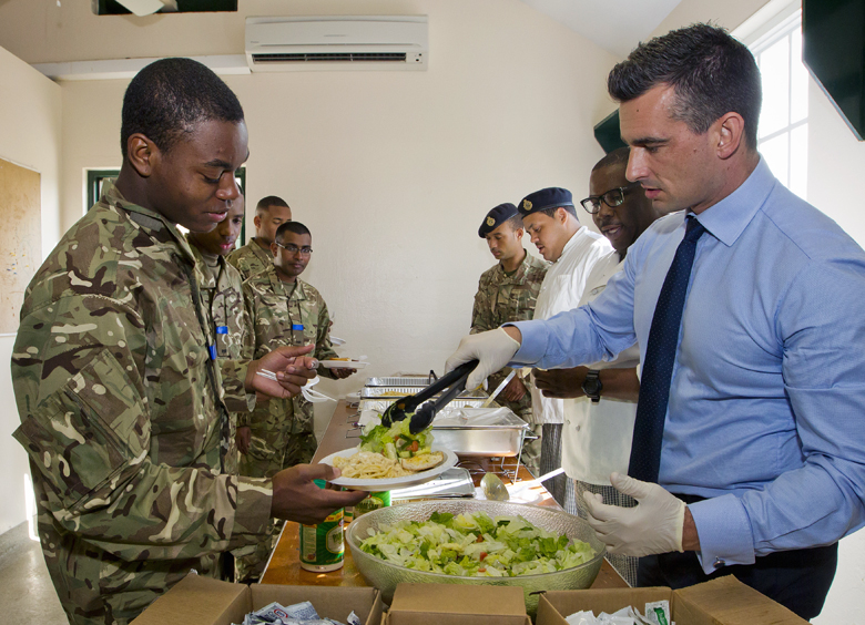 Minister Baron added his thanks for the service and pledged his support throughout their career in the Royal Bermuda Regiment. As part of the visit today the Ministers met the recruits and later, during lunch, Minister Baron join in serving lunch to the soldiers.