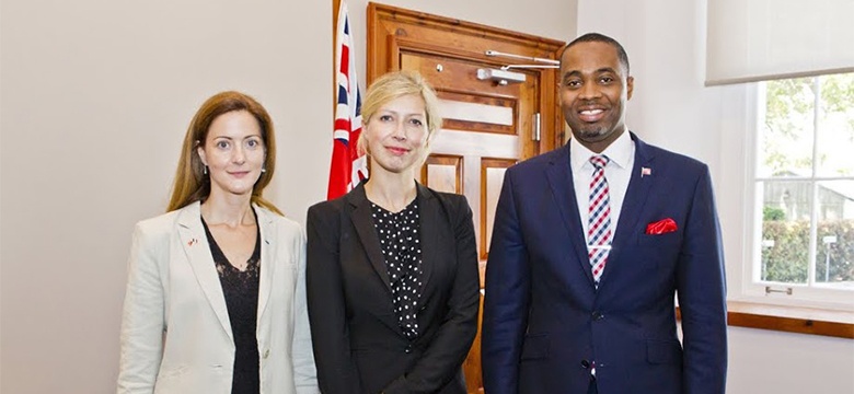 -Premier of Bermuda and Minister of Finance, the Hon. E. David Burt JP MP welcomed to the Island the Consul General of France in New York, Mrs. Anne-Claire Legendre, during a visit to the Cabinet Office.