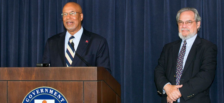 - Press ReleaseThe Governor, Mr George Fergusson, met Mr Larry Mussenden today to welcome him on his first day in office as the Director of Public Prosecutions.
